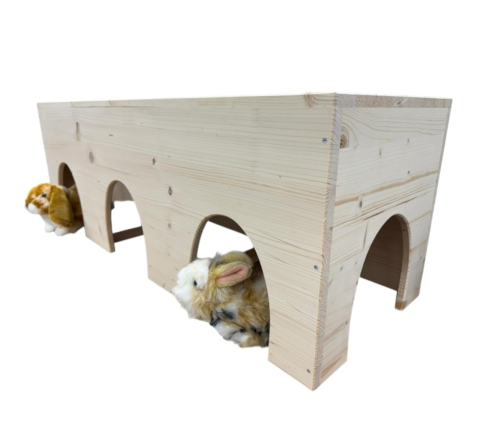 Dieses System besteht aus Häuser und Tunnel das sich individuell kombinieren lässt. Häuser und Tunnel in verschiedenen Größen – mit oder ohne Fenster – sorgen für Abwechslung, Bewegung und sichere Rückzugsorte.