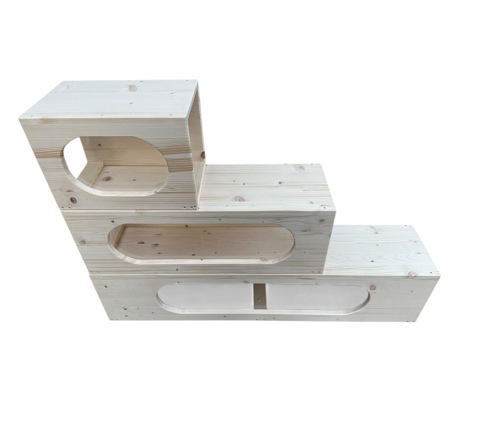 Dieses System besteht aus Häuser und Tunnel das sich individuell kombinieren lässt. Häuser und Tunnel in verschiedenen Größen – mit oder ohne Fenster – sorgen für Abwechslung, Bewegung und sichere Rückzugsorte.